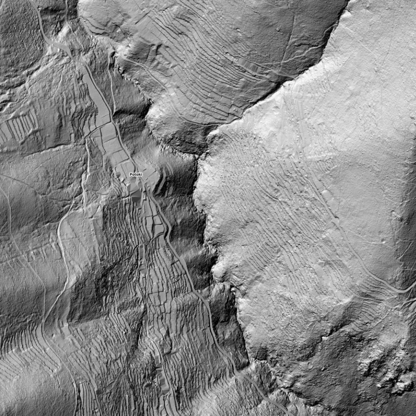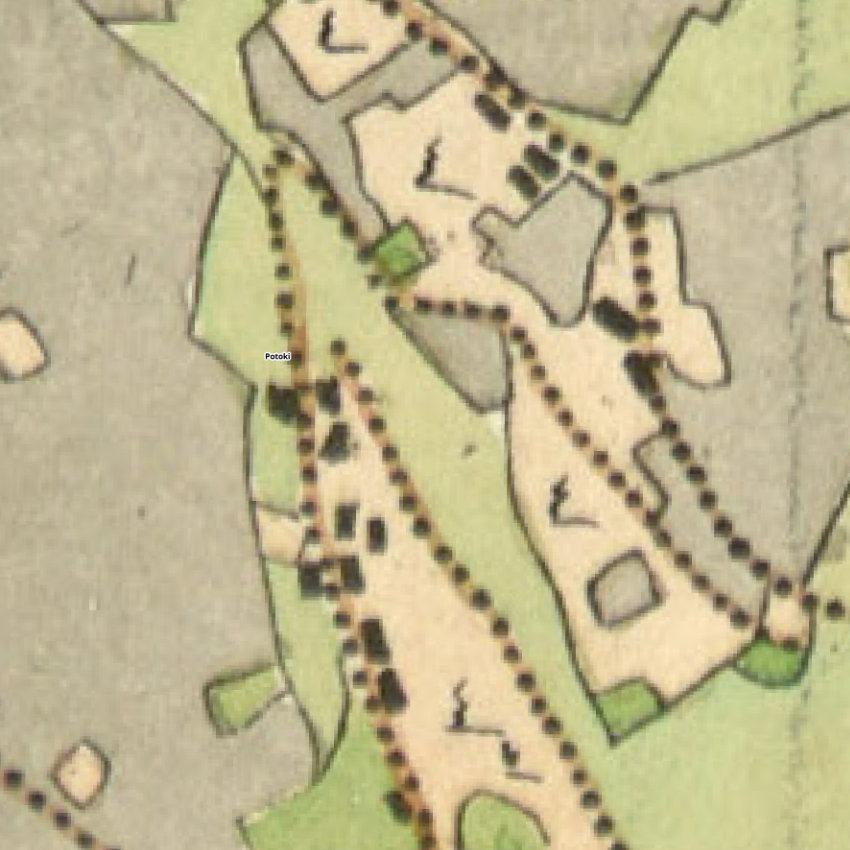 Smještaj naselja Potoki određen je djelomično zaklonjenim položajem zavučenim relativno duboko u prostor kanjona. Naselje je smješteno na blaže nagnutom dijelu zapadnih padina kanjona, sa dovoljnom količinom osunčanosti i u neposrednoj blizini korita što je osiguralo sve potrebne uvjete za njegovo održivo funkcioniranje. Krajobraz Potoka premrežen je suhozidnim terasama koje se pružaju paralelno s koritom, a duž terasa smještene su građevine. Kuće su građene u nizu i smjerom također prate pružanje korita i terasa, a uz kuće se nalaze i manje gospodarske građevine. Na terasama uz kuće nalazi se još nekoliko aktivnih vrtova i vinograda te livada i pašnjaka dok je većina ipak napuštena i prepuštena zarastanju. Stvarnu sliku nekadašnjeg izgleda naselja i njegova poljoprivrednog krajobraza daju nam povijesni katastar i Lidar snimak koji odaju znatno veću površinu suhozidnih terasa u funkciji poljoprivrednog uzgoja.