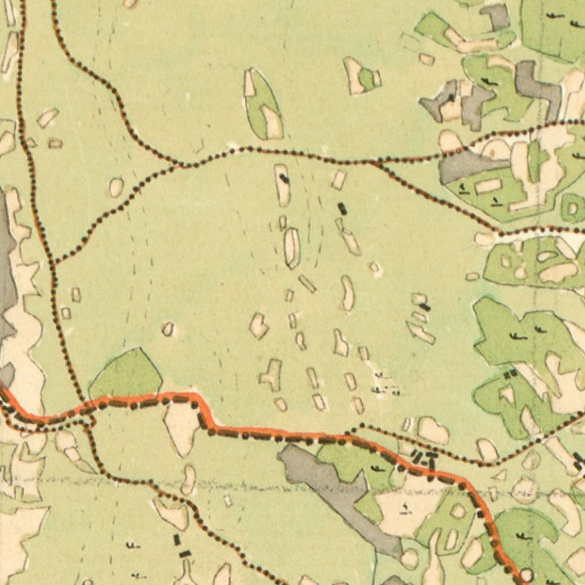 Ograđene vrtače predstavljaju jedno od glavnih obilježja (krajobraznog područja) šumovitih istočnih padina grebena Gradac – Perun. Vrtače ispunjene većom količinom kvalitetne zemlje pružaju se u relativno pravilnom rasporedu duž nekoliko zaravnjenih reljefnih polica. Unutar vrtača uzgajale su se izdržljivije žitarice i povrtne kulture poput raži, ječma, krumpira i kupusa. Kako bi se usjevi i nasadi zaštitili od stoke koja je slobodno pasla na okolnom pašnjačkom krajobrazu vrtače su ograđivane suhozidima. Zapuštanjem pašnjaka došlo je do razvoja šume koja se postepeno proširila i unutar samih vrtača.